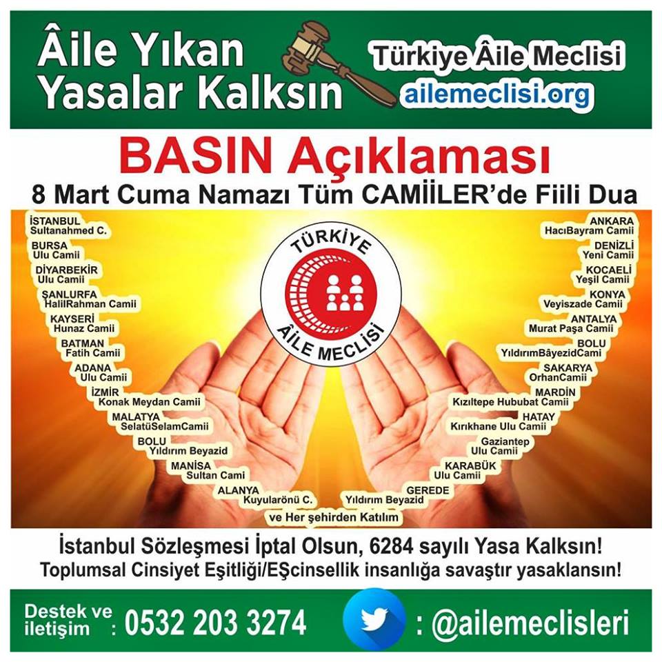 önderliğinde kurulan Türkiye Aile Meclisi platformuna ait. Platformun